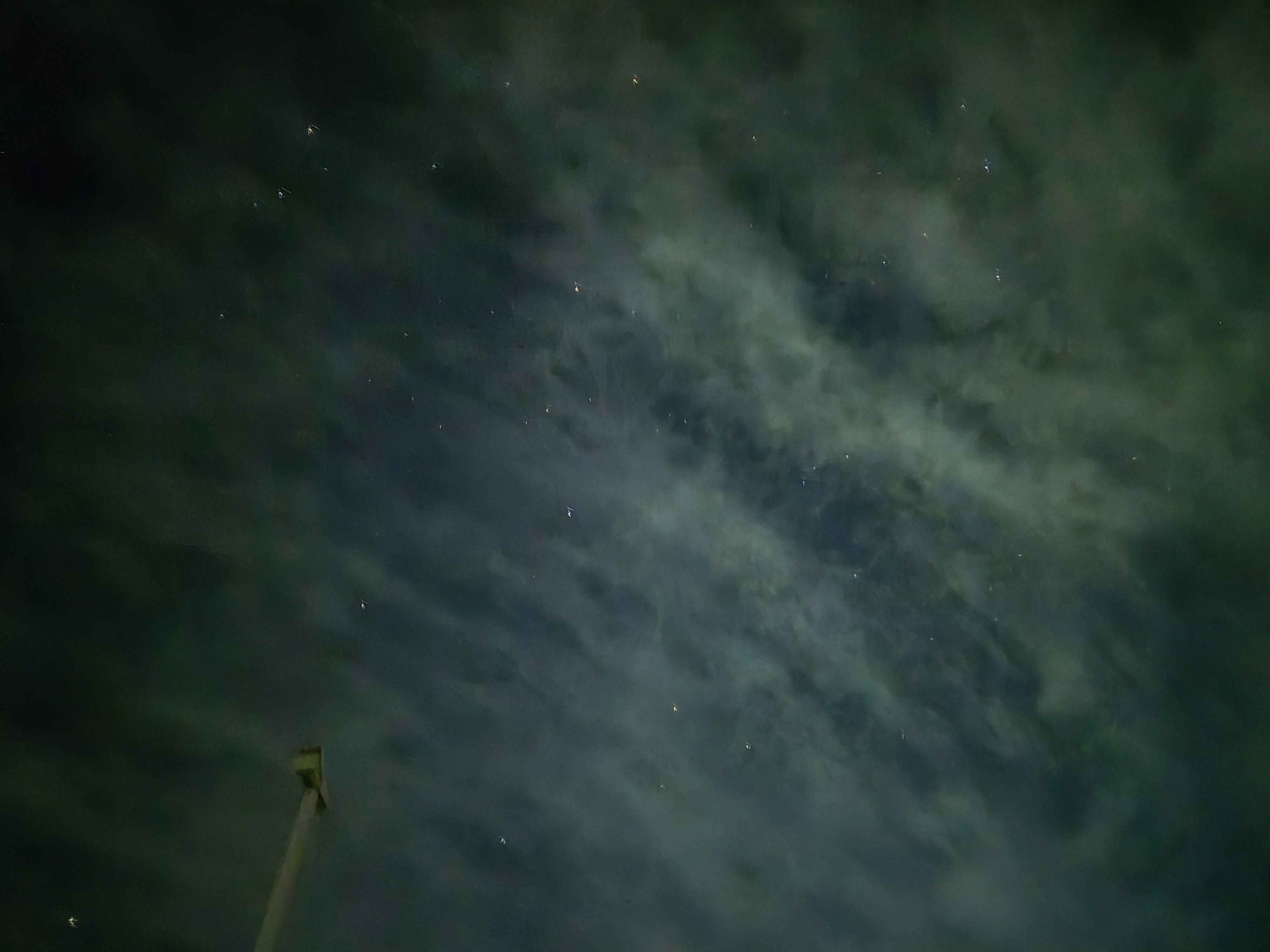 사람들은 별을 볼 때 온전히 맑은 하늘만 떠올리지만, 사실 구름이 얇게 흩어진 상태의 밤하늘도 분위기가 훨씬 몽환적이다. 하늘 전체가 흐릿하게 번지면서 별빛이 더 은근하게 빛나고, 그 사이로 작은 별들이 하나둘 모습을 드러낸다.